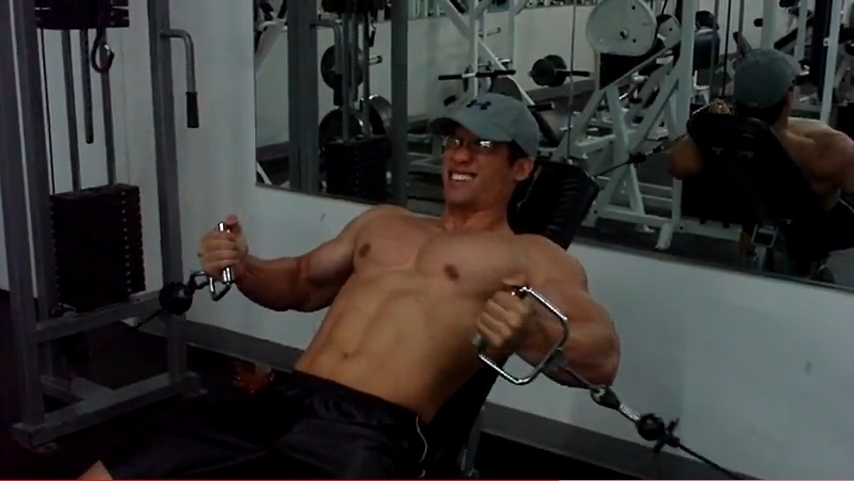 His pumped pecs show how effective this training is. Bodybuilder and powerlifter